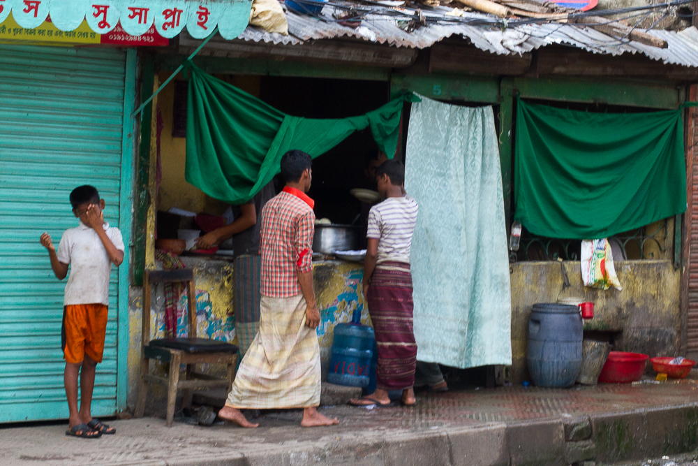 Speeding through the city at 6 am, going through red lights, like they were tissue paper. On a rare occasion the the CNG driver eased into the intersection treating it as a flashing yellow light! I probably reached my destination in 20 minutes! At 10:00 it was a different story. Leaving Old Dhaka on a bus, we inched along, taking close to an hour to get within rickshaw distance of our apartment. The CNG ride cost me 350 taka ($4.40 U.S.D.) since I didn’t have the correct amount, and he didn’t have the right change! The bus ride cost me 25 taka (.30 USD), and then a 5 minute rickshaw ride for 20 taka (.25 USD). All in all it was a great morning with a nice photowalk with TTLers at the Saderghat Launch Terminal, followed by a nice breakfast of dal, porota, and cha!!