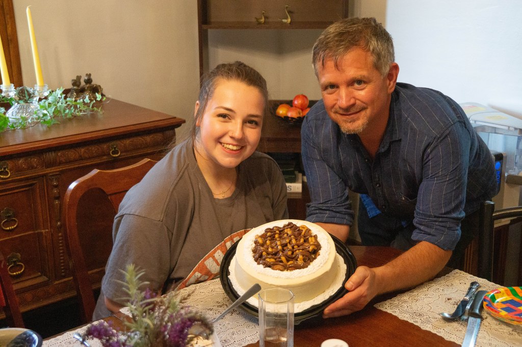 Thanks to Dairy Queen this Reese Peanut Butter Cup cake was readily available with no fuss, and no muss! The party was for our son, Austin, and his son’s fiancee, Kourtney! Sorry, Dusty, you didn’t get any of it since you left a week too soon. But, we did sing for you. Google Mail said that the video was too long to send. So, I will have to learn how to edit it, and send it.
