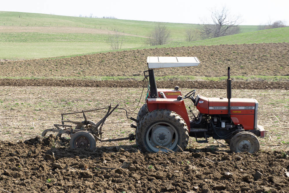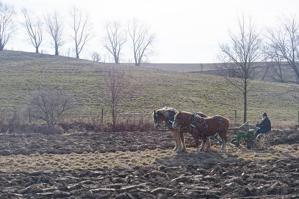 The upper photo is of a plow that is manufactured locally for the Amish, many who use horses for their field work. In the lower photo, you see a plow in action!