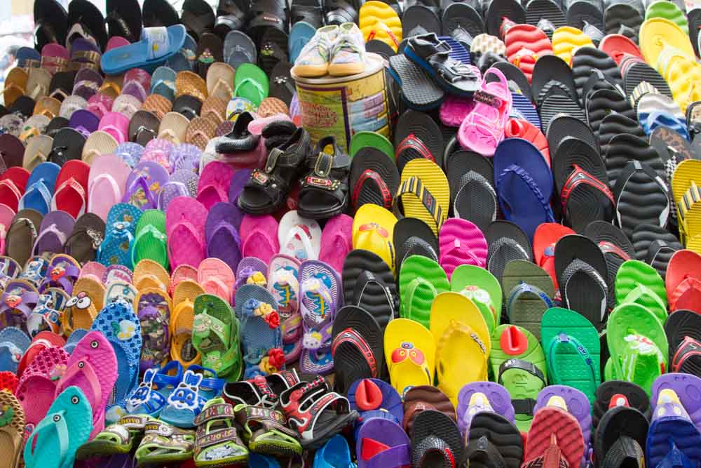 SANDALS ANYONE? This assortment was available at a shop in Joypara.