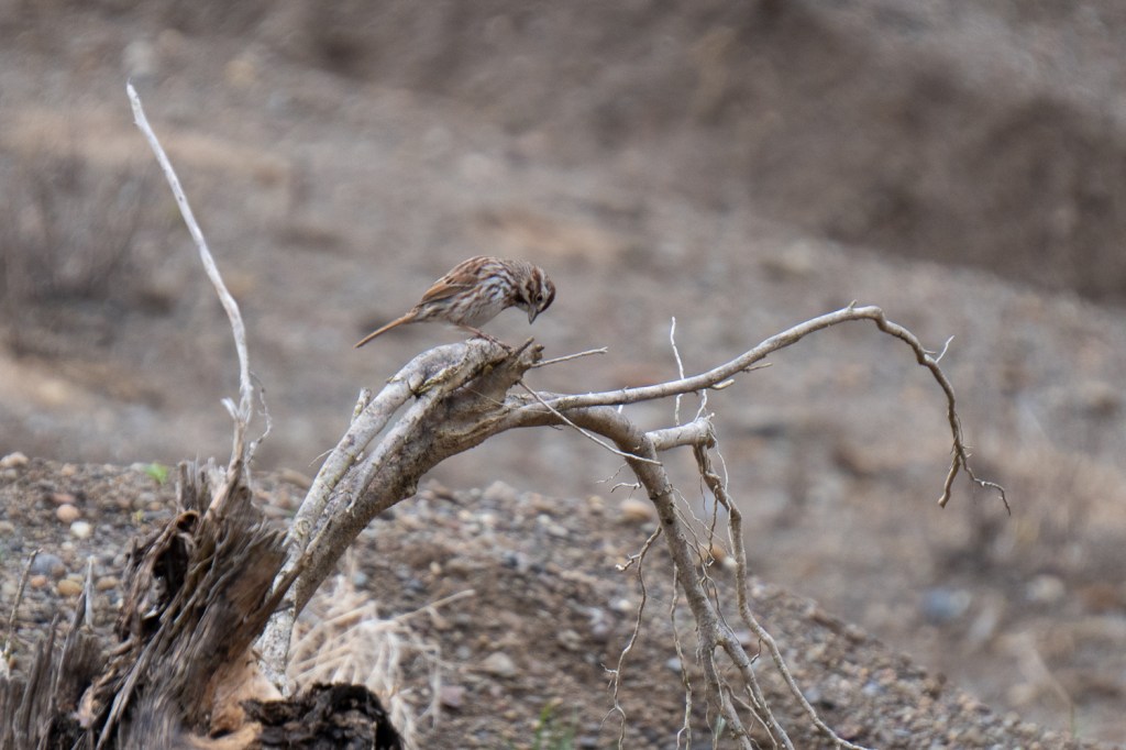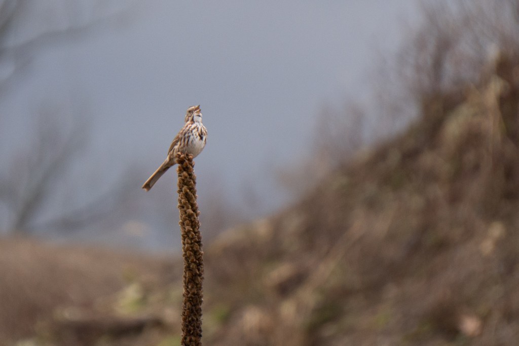 I think this is a Song Sparrow singing his heart out, penetrating the fog with his song!!