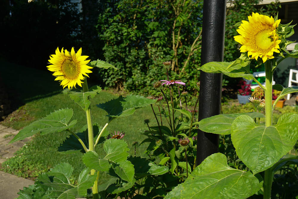 Sunflowers hit by the sun on Sunday! True, but this photos was not taken on Sunday, but posted on Sunday, and the sun is still shining on them!