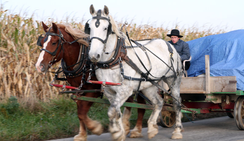 Amish harrowing the ground with a team of horses. Spring has really come to Ohio!
