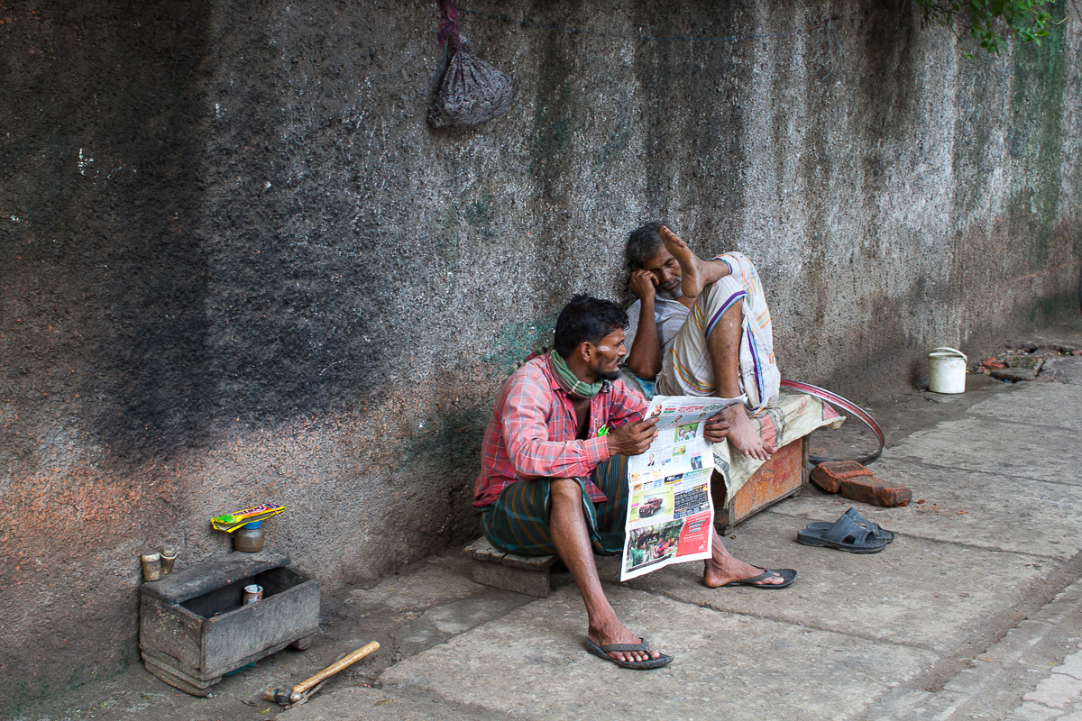 I actually took this photo while riding a Rickshaw on Asad Avenue in Mohammadpur, Dhaka, Bangladesh. I have had tea with the gentleman on the left, and he has even given me free rickshaw rides.