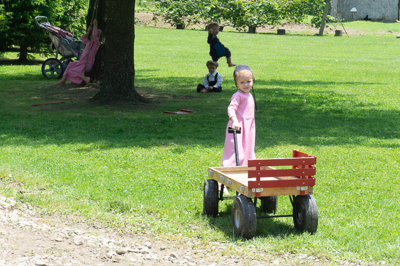 Men lining up according to their age. Then at a certain before the service, they go in with the oldest gentleman going first. When I attend an Amish wedding or church service I like to make sure I go in with the older gentleman (after all I am 75!) so I will likely be able to sit on one of the handful of chairs they have for the elderly, so they don’t have to sit on a bench that doesn’t have a back! 🙂