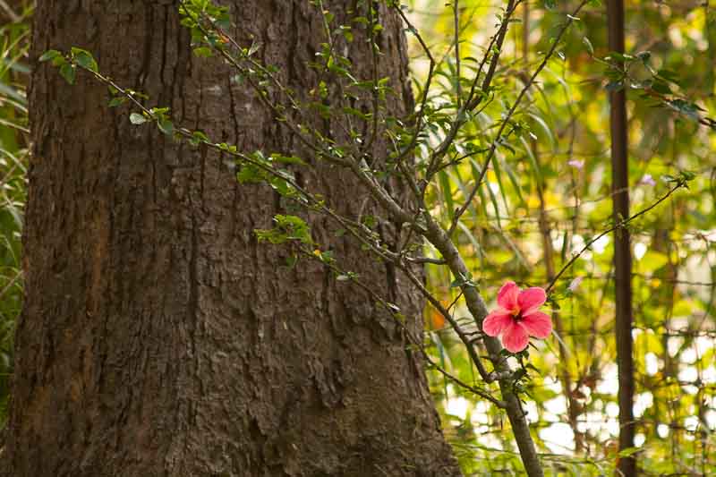 I DECIDED TO PHOTOGRAPH THIS SOLO FLOWER WITH THE MASSIVE TREE BEHIND IT!